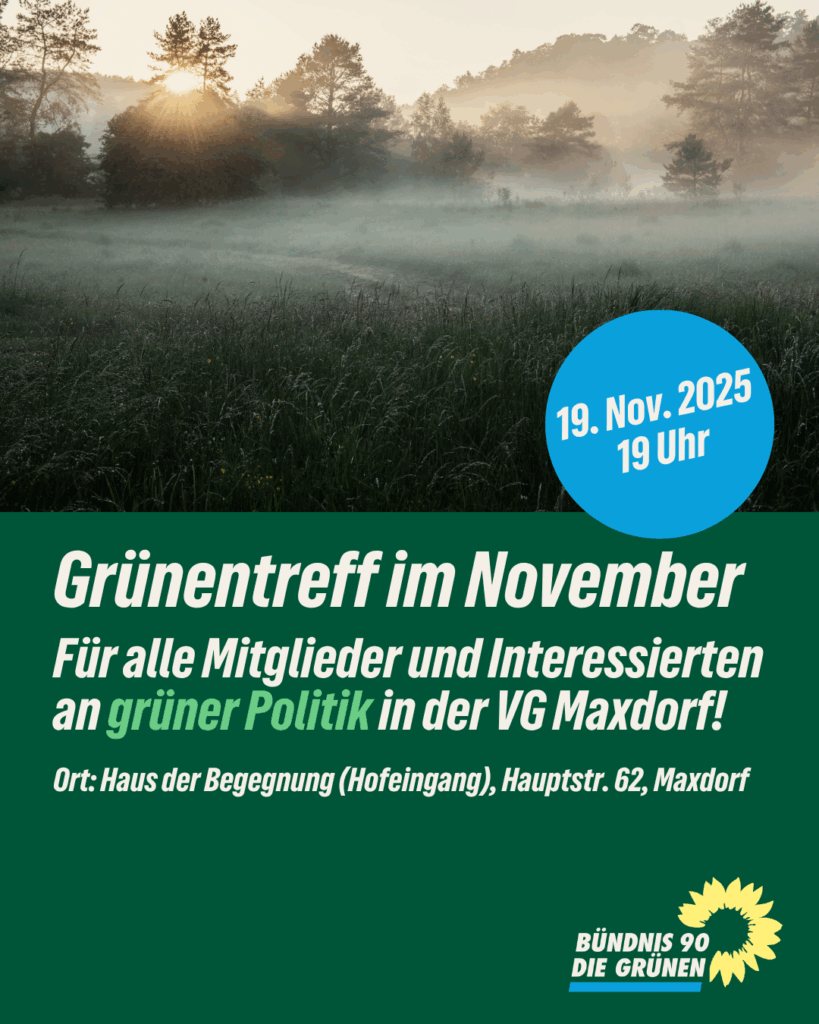 Wir treffen uns mit allen Mitgliedern und Interessierten zum Grünentreff und besprechen aktuelle Themen und grüne Politik in der Verbandsgemeinde Maxdorf.